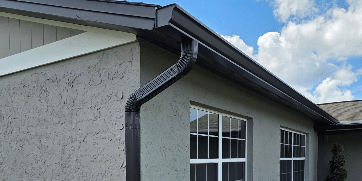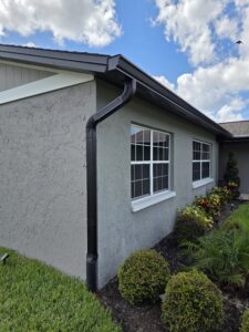 This complete gutter system transformation in New Port Richey showcases the dramatic impact that new black gutters can make on a home’s appearance and functionality. The project involved carefully removing the old, worn gutters and downspouts that were no longer effectively channeling rainwater away from the foundation. In their place, sleek black seamless gutters were custom-fabricated on-site to ensure a perfect fit for the home’s exact dimensions. The black finish provides a modern, sophisticated accent that complements the home’s exterior while offering superior protection against Florida’s heavy rainfall. With proper water management now restored, the homeowners can enjoy peace of mind knowing their property is protected from potential water damage for years to come.