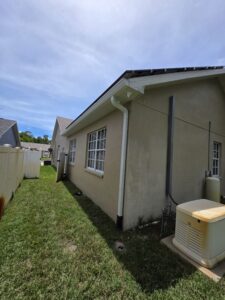 This complete gutter system overhaul transformed a home in New Port Richey with brand new seamless gutters and downspouts. The project began with a thorough removal of the old, deteriorating gutter system that was no longer effectively channeling rainwater away from the home’s foundation. Our experienced team installed custom-fabricated seamless gutters in the homeowner’s chosen color, complete with properly sized downspouts positioned strategically to maximize drainage efficiency. The new system now provides superior protection against Florida’s heavy rainfall, preventing potential water damage to the foundation, landscaping, and exterior walls. With a 2-year workmanship warranty and 50-year finish warranty, this installation offers both immediate improvement and long-term peace of mind.