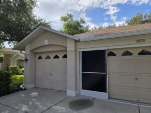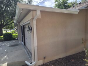 A comprehensive gutter system overhaul transformed this Hudson home’s exterior functionality. The project involved tearing down and replacing the front gutters, installing strategic splash guards to prevent water damage, and fixing the rake connection from upper existing gutters. Our team rerouted a problematic downspout to improve drainage flow and added professional-grade leaf guards to prevent debris buildup. This complete solution addresses common Florida homeowner challenges: protecting foundations from water damage during heavy rainfall while minimizing maintenance through effective gutter protection. With seamless gutters backed by our 2-year workmanship warranty, this installation provides lasting protection against Florida’s intense weather conditions.