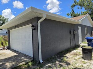 A family home in New Port Richey received a complete gutter system upgrade last week, transforming both functionality and curb appeal. The project involved installing 6″ seamless gutters with strategically placed downspouts to effectively channel rainwater away from the foundation. Florida’s heavy rainfall demands properly sized gutters and downspouts to prevent water damage, landscape erosion, and foundation issues. The installation team carefully measured and custom-fabricated each gutter section on-site, ensuring a perfect fit with no unsightly seams. Premium materials with a 50-year paint warranty were selected to withstand Florida’s harsh UV exposure and humidity. The homeowners opted for underground drainage extensions, directing water safely away from the property through buried flexible hoses with pop-up emitters. This comprehensive system now provides complete protection against water damage while complementing the home’s architectural style.