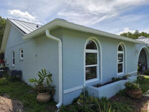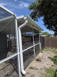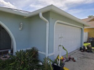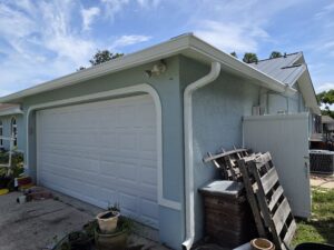 A complete gutter system overhaul transformed this New Port Richey home, enhancing both functionality and curb appeal. The project involved carefully removing the aging, deteriorated gutters and downspouts that were no longer effectively channeling rainwater away from the foundation. In their place, our experienced team installed brand new seamless gutters with properly positioned downspouts to ensure optimal water drainage. The homeowners selected from our wide range of color options to perfectly complement their home’s exterior. With Florida’s heavy rainfall patterns, this upgrade provides essential protection against water damage while adding a clean, finished look to the property. The new system includes our 2-year workmanship warranty and 50-year finish warranty, giving the homeowners peace of mind for years to come.